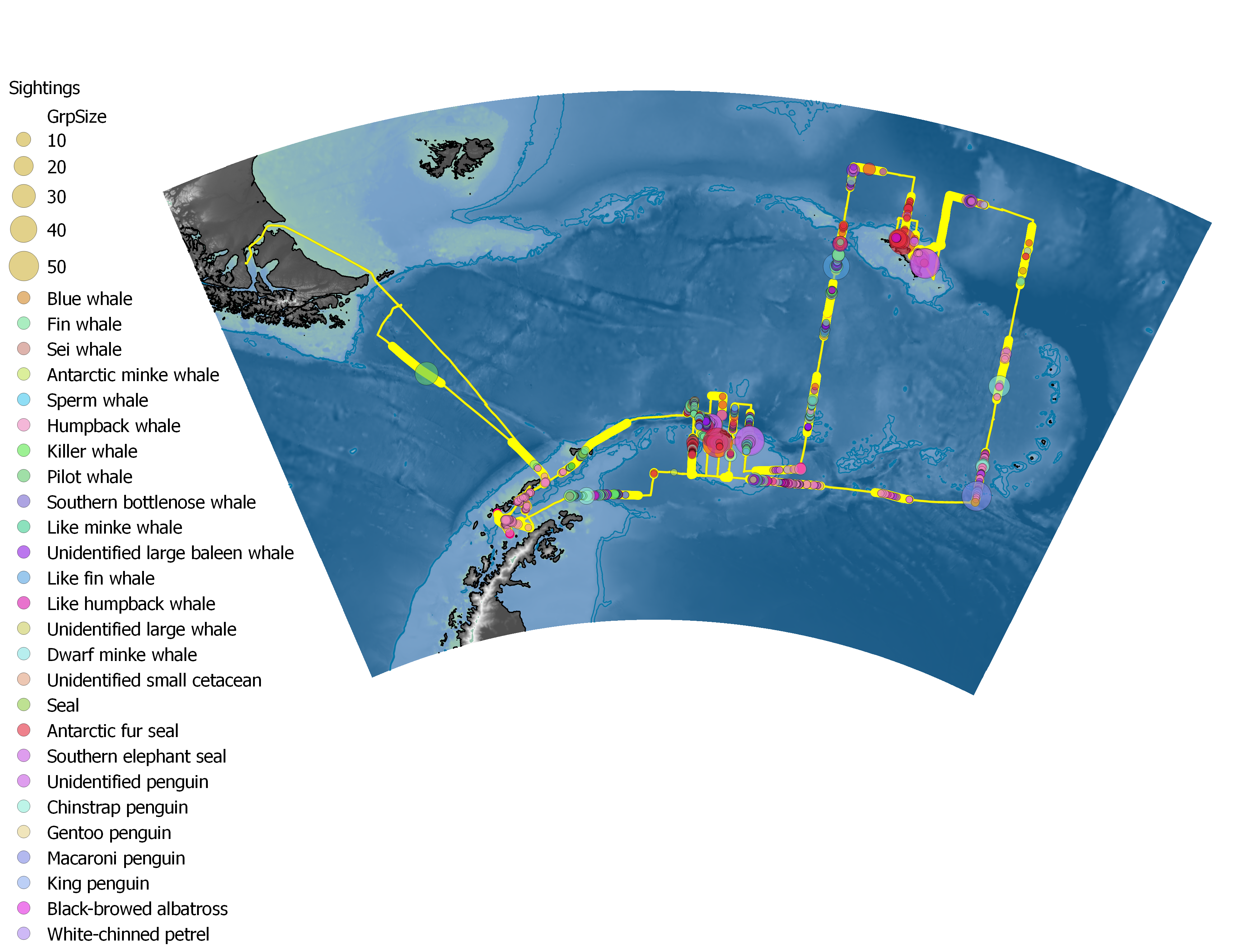 Tellingene om bord på «Kronprins Haakon» omfatta også seler og pingviner. I tillegg ble det tatt vevsprøver fra ti knølkvaler og en finnkval.