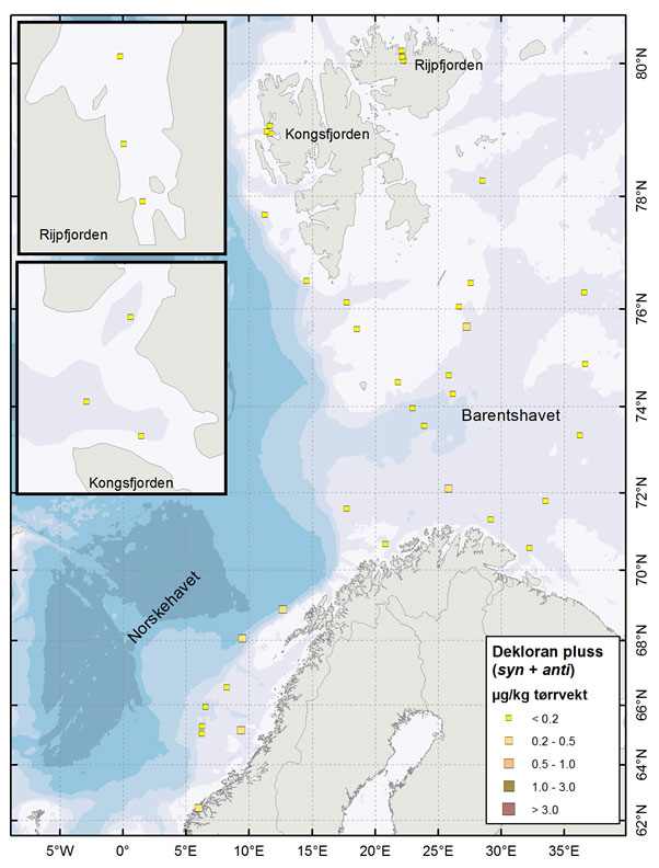Etter at bunnprøver fra Barentshavet og Norskehavet har blitt undersøkt for enda en type miljøgift, er det klart at også stoffgruppen dekloraner finnes på bunnen i disse havområdene. Alle funnene viser lave konsentrasjoner.
