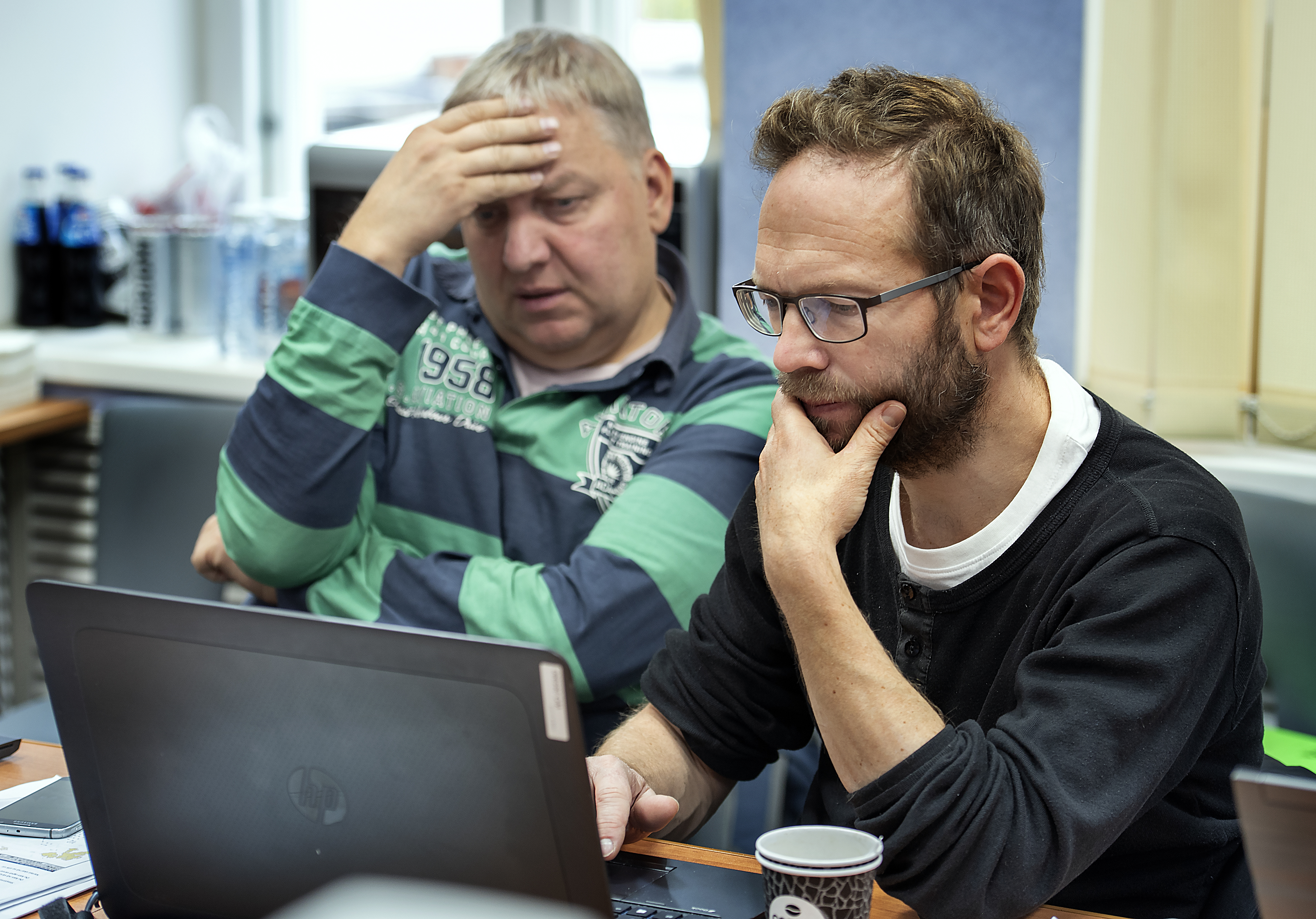Havforskarane Jurij Kovaljov (t.v.) og Georg Skaret i tett samarbeid om kvoterådet for lodde. (Foto: Gunnar Sætra / Havforskingsinstituttet)