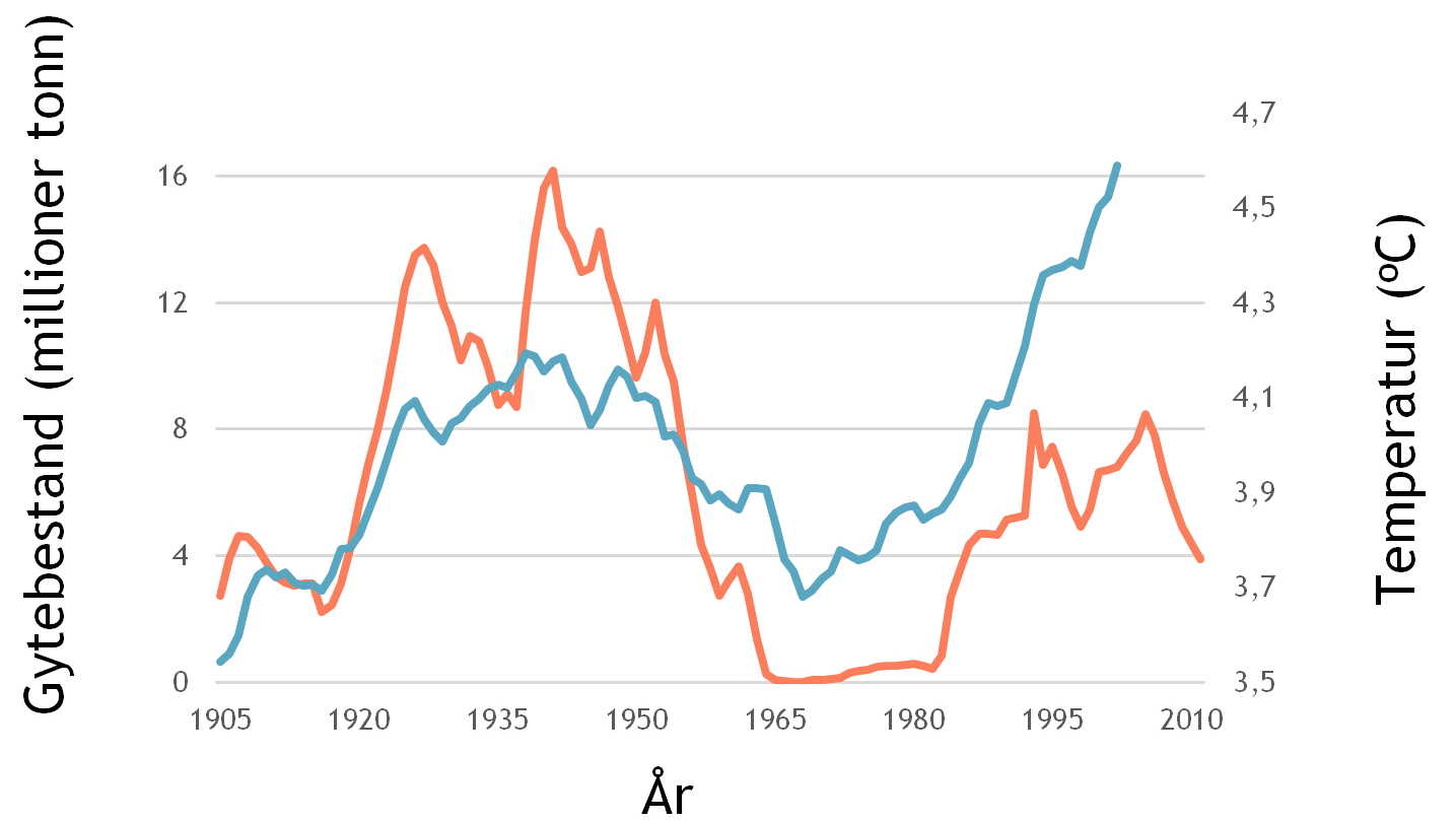 Etter årtusenskiftet har det oppstått en ny trend, og det er ikke lenger samme forhold mellom temperatur og størrelsen på gytebestanden.