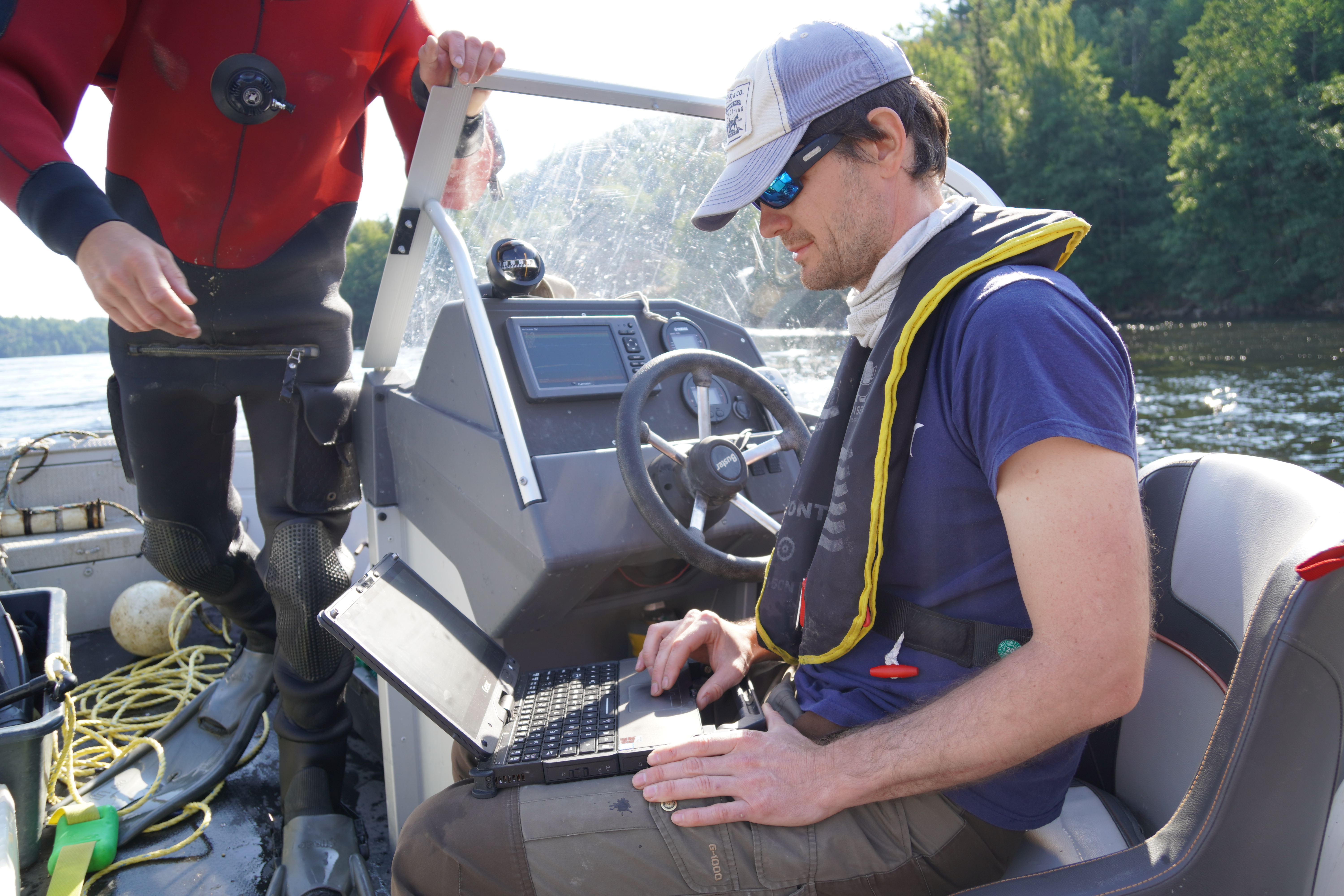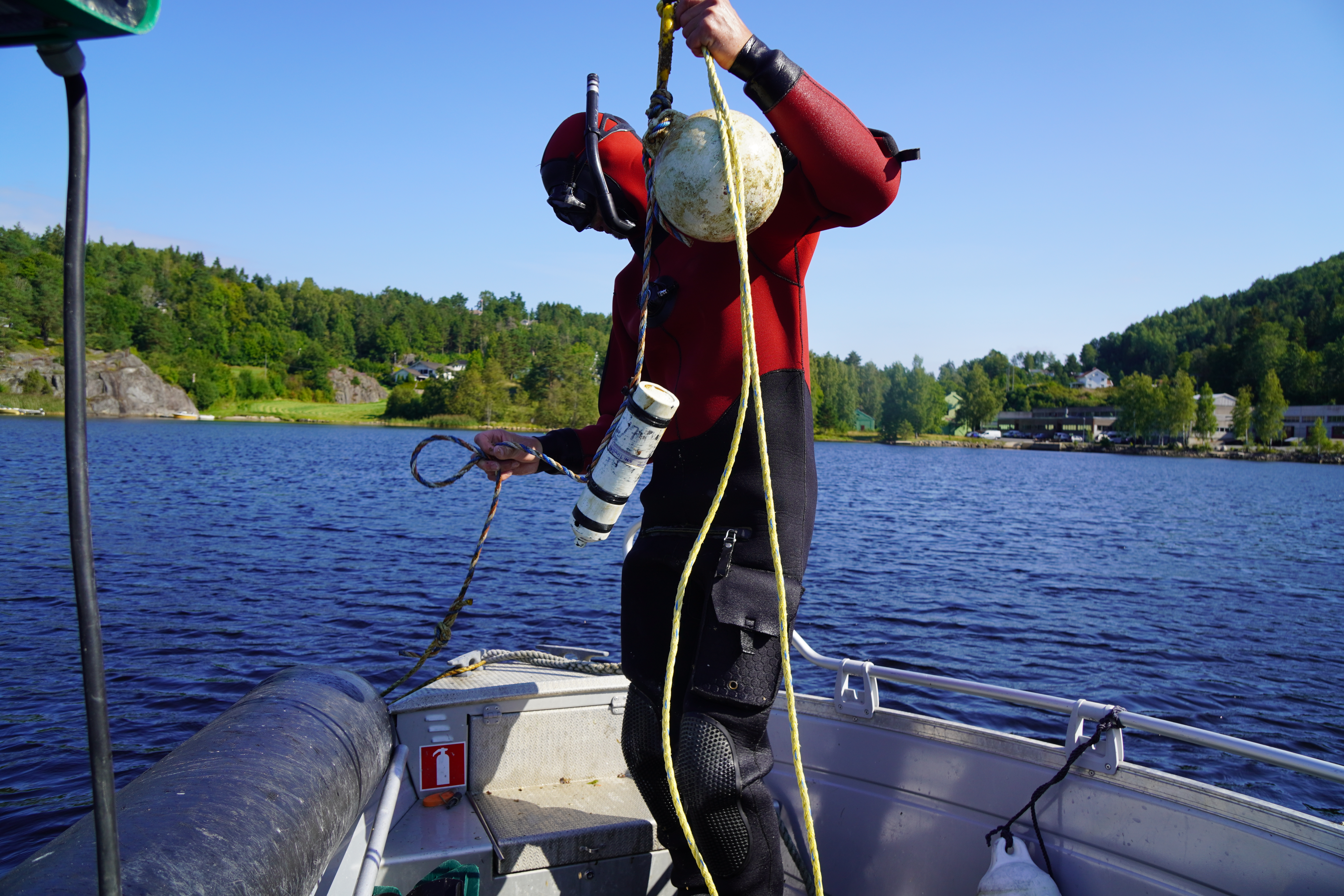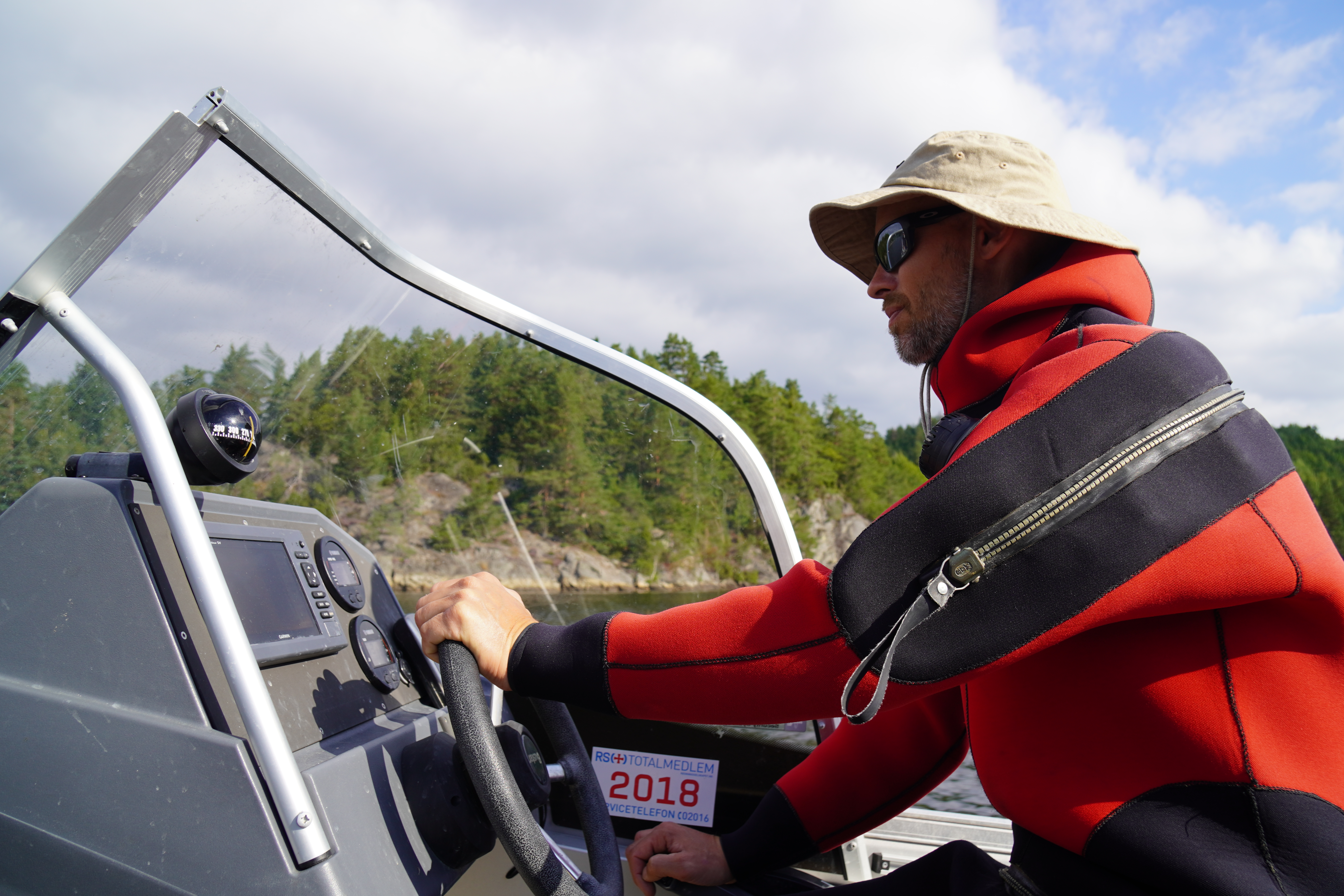 Et nettverk av 26 lyttebøyer ble derfor plassert ut for to år siden. De merket totalt 99 ål på strekningen med ulik saltholdighet. Når de kjører opp og ned langs fjorden for å finne bøyene igjen, sitter forsker Even Moland parat bak båtrattet og peiler seg inn på GPS-merkingen.