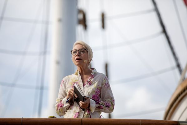 Havforskingsdirektør Sissel Rogne er også oppteken av at den staselege seglskuta no kan kallast eit forskingsfartøy.