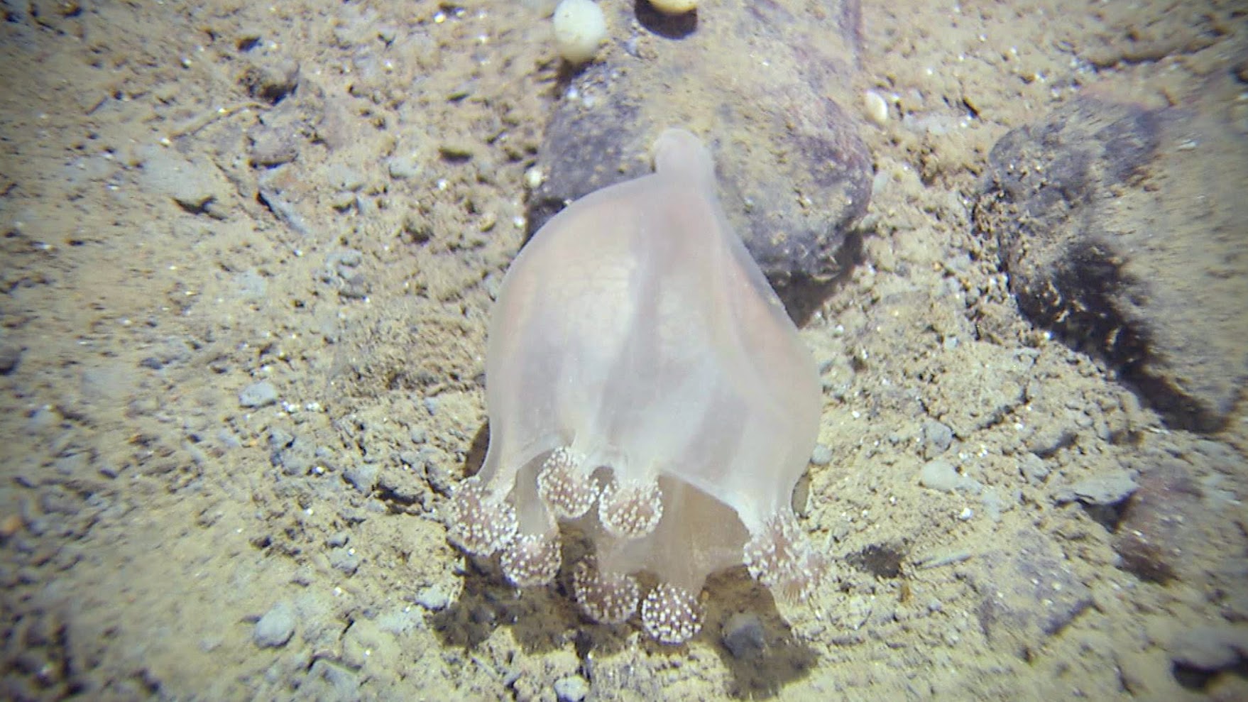– Noen av dyrene vi observerer er aldri eller sjelden observert før. Et av disse er den bunnlevende begermaneten Lucernaria bathyphilia som vi gjorde mange observasjoner av, i tillegg til at vi fanget noen eksemplarer av arten da vi hentet opp prøver fra havbunnen.