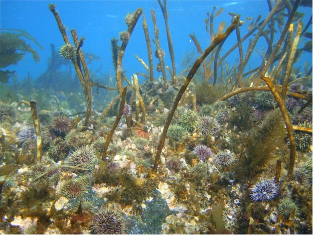 - Overfiske førte til at de store rovfiskene som spiste kråkeboller, ble færre. Dermed fikk kråkebollene meske seg i fred på tarestilkene og slik skape en marin ørken, sier Norderhaug.