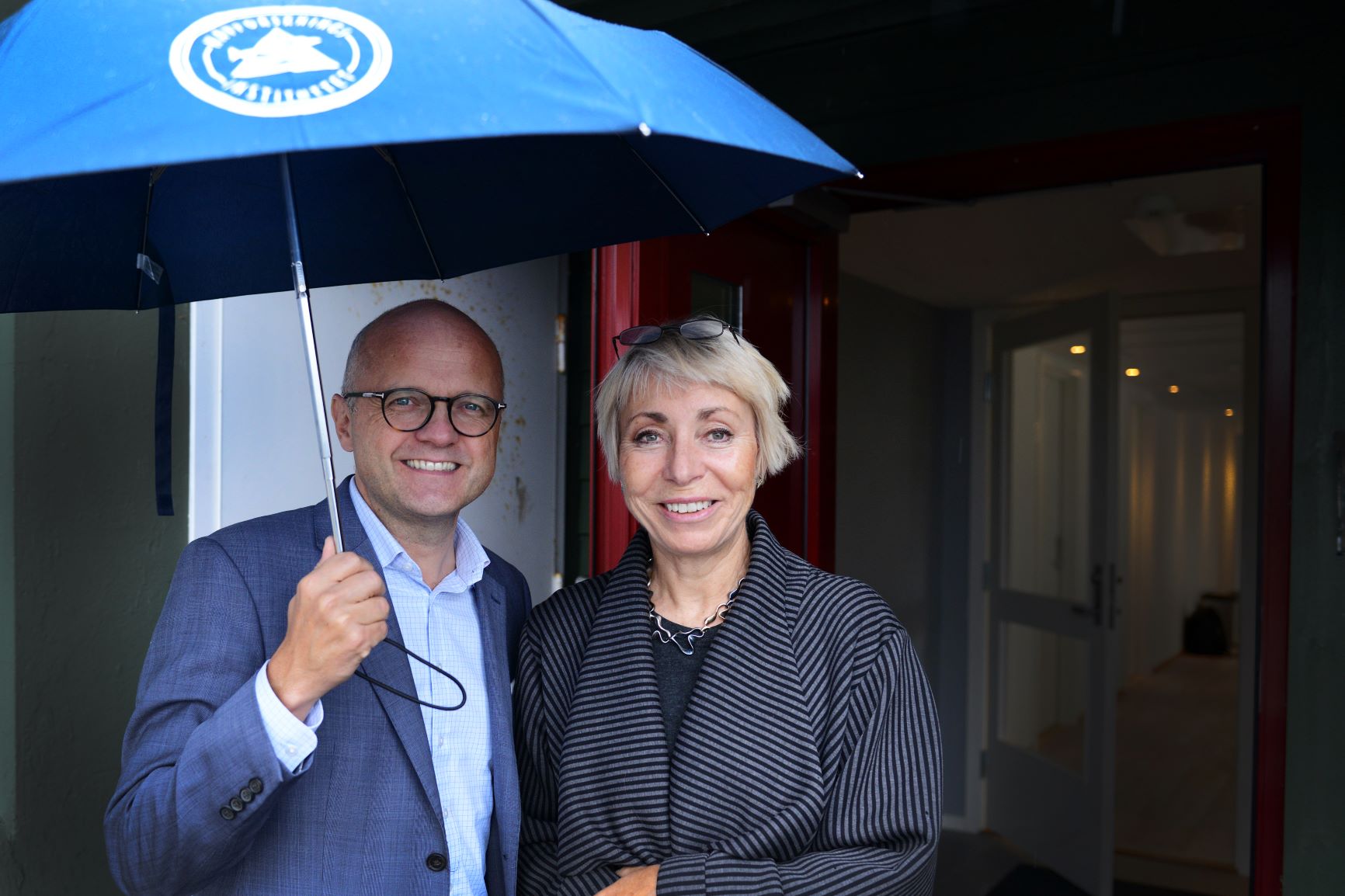 Vidar Helgesen leder regjeringens havpanel, og er en kjent gjest på Havforskningsinstituttet.Her sammen med Sissel Rogne ved et tidligere besøk. (Foto: Kjartan Mæstad)