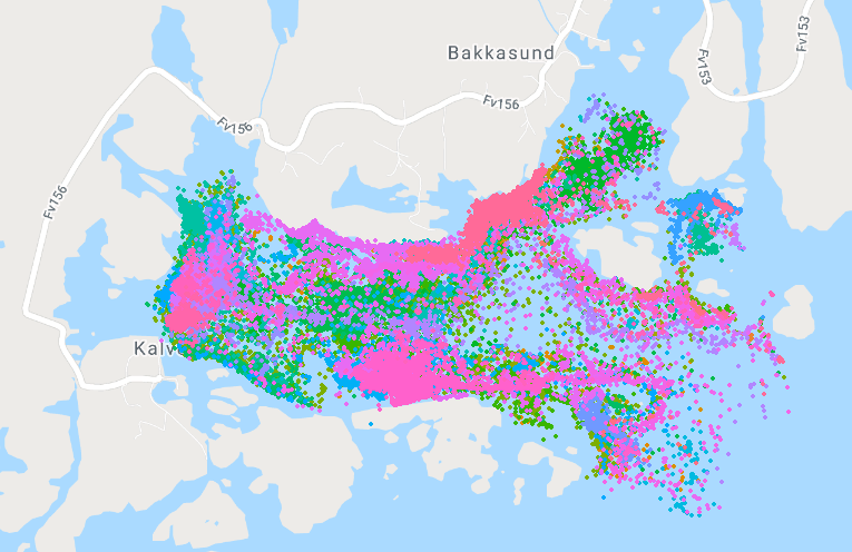 Slik kan torskane sjå ut på kartet, her utan forstyrring: