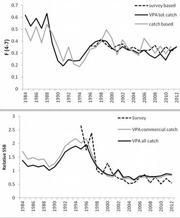 ICES anbefaler på bakgrunn av gjenoppbyggingsplanen at dersom gytebestands-indeksen i høsttoktet i 2013 (resultater tilgjengelig tidlig i desember) er lavere enn indeksen i 2012, skal fiskerireguleringene sikte mot en reduksjon av fiskedødelighet i 2014 på minst 45 % relativt til fiskedødeligheten i 2009. Hvis toktindeksen er høyere enn i 2012, skal tiltakene i 2013 videreføres i 2014.
