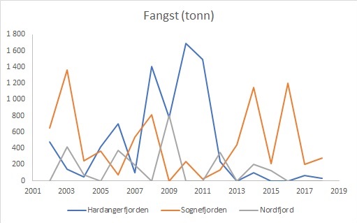 Havforskningsinstituttet anbefaler videre at fangsten i Hardangerfjord og Nordfjord begrenses til median fangst for perioden 2002-2016, det vil si 240 tonn for Hardangerfjorden og 80 tonn for Nordfjord.