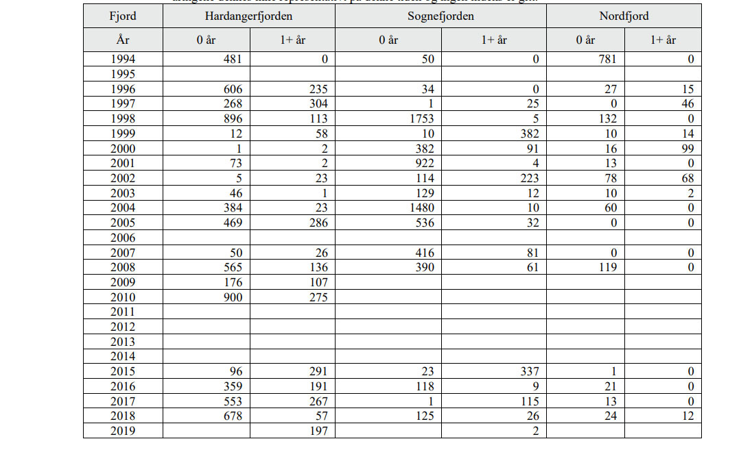Tabell 1: Brisling i Hardanger- (omr-lok 08-15, 20 ,21), Sognefjorden (28-39) og Nordfjord (28-36). Grunnlag