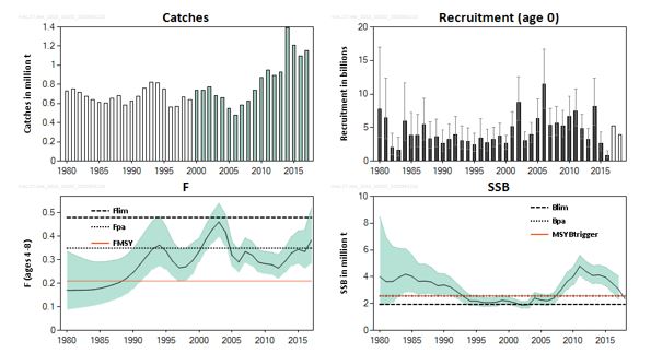ICES anbefaler at når MSY-tilnærmingen følges så bør fangstene i 2019 ikke overstige 770 358 tonn.