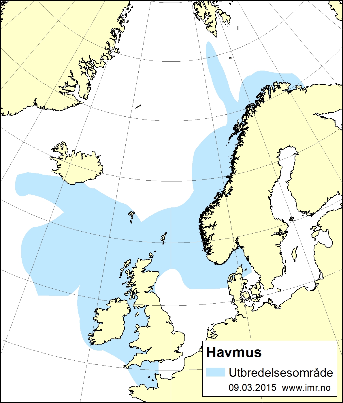 Den arten som er vanlig hos oss er én av rundt 40 havmusarter i verden. Arten finnes både langs kontinentalskråningene og i dypere deler av sokkelområdene i hele Nordøst-Atlanteren, men også i deler av Middelhavet og utenfor Nordvest-Afrika. Den er vanligst på 300–500 m dyp.