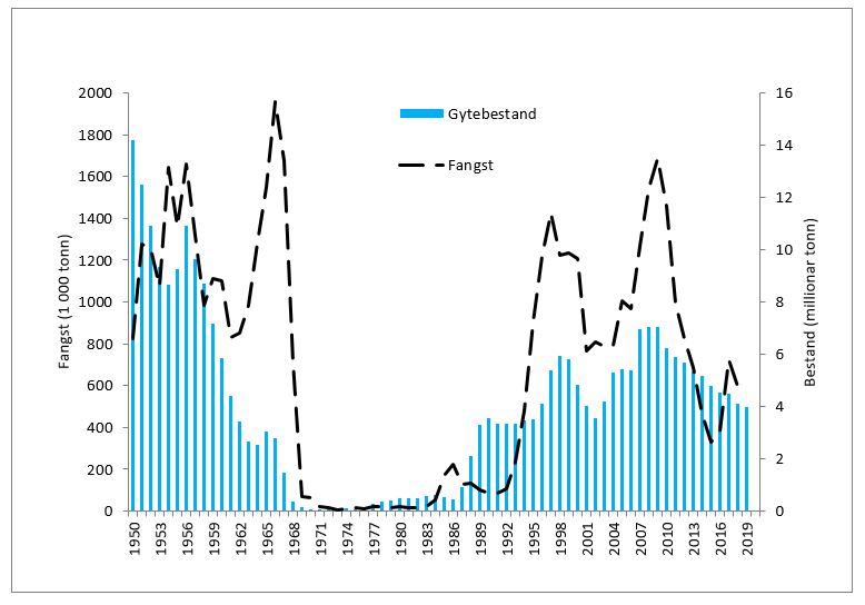 Bestand og fangst av norsk vårgytende sild.
